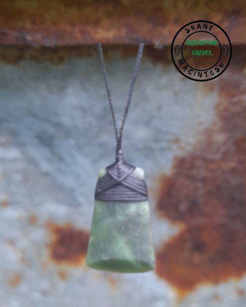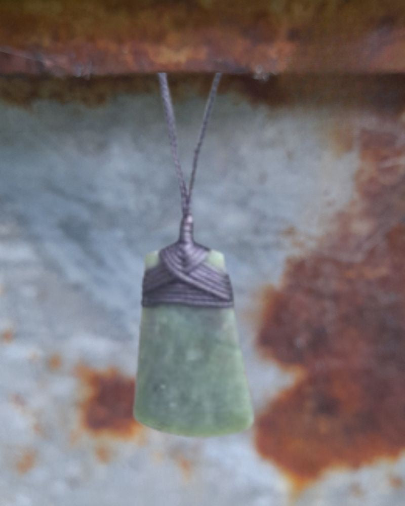 This Small Children`s Lashed Toki is made from top quality New Zealand Greenstone and lashed with a fully adjustable black waxed cord & completed with a matt finish
