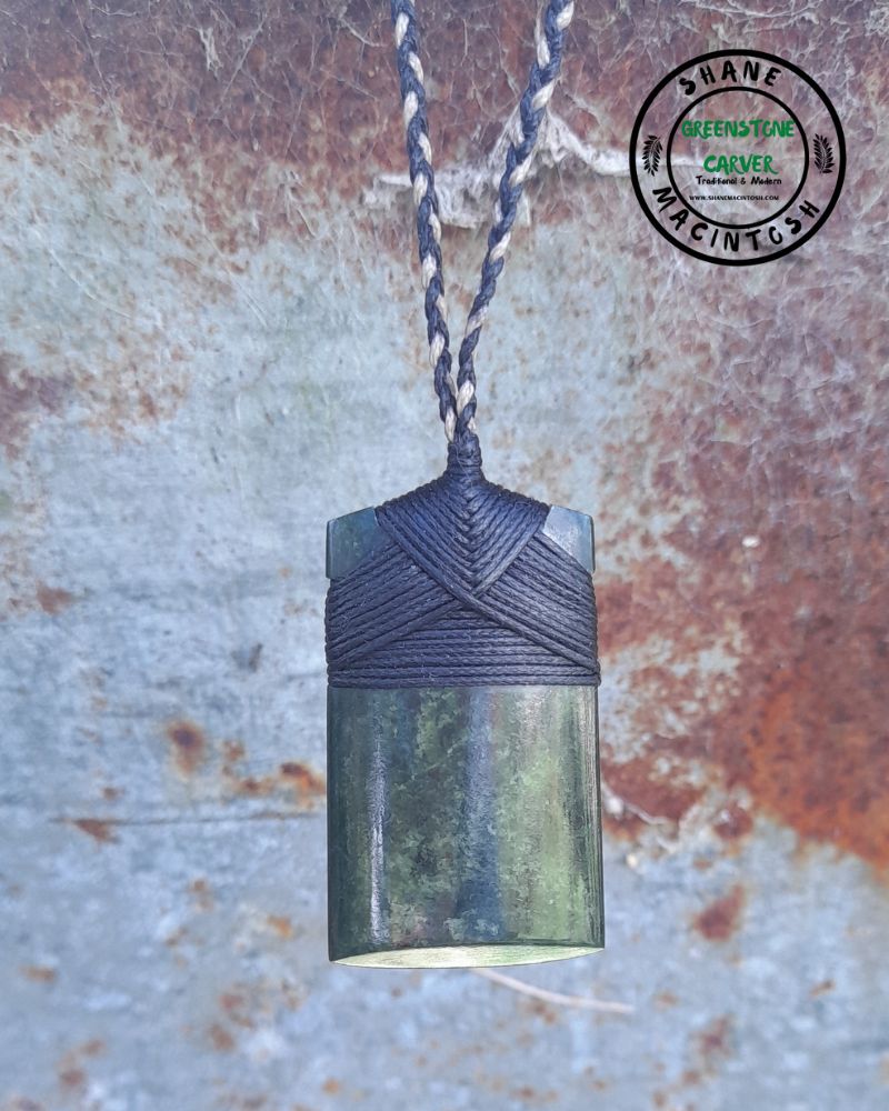 Carved from Marsden Pounamu this type of stone comes from an area outside Greymouth on the West Coast of New Zealand’s South Island.